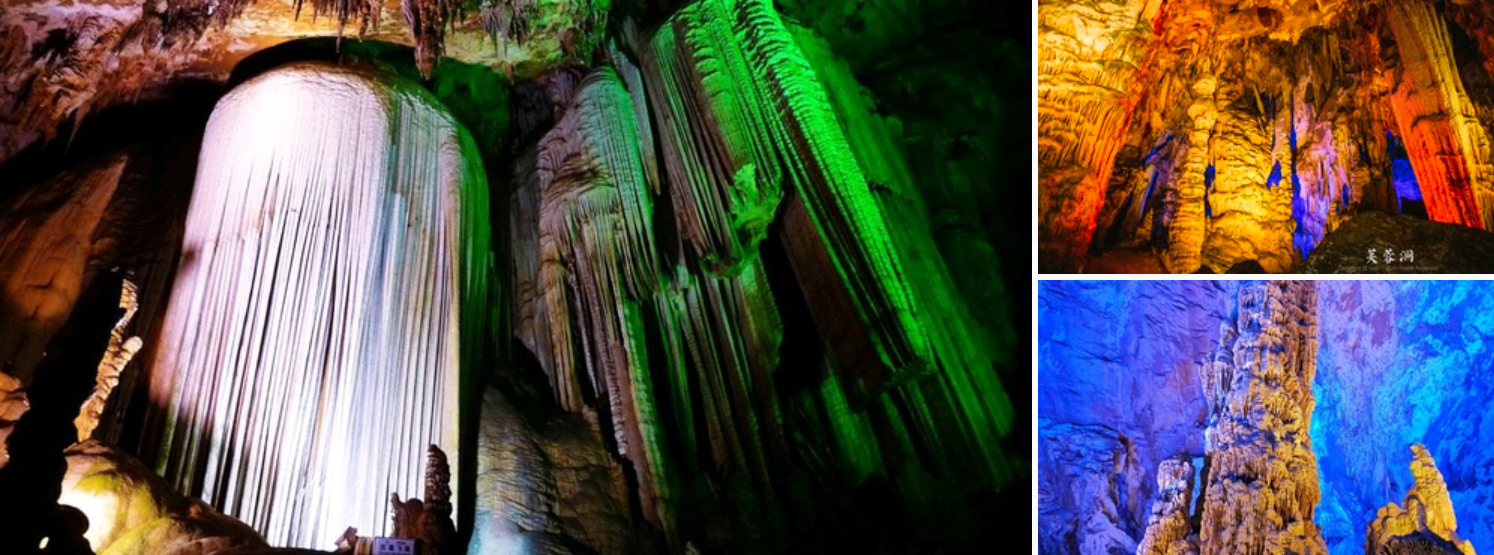 · The main cave of Furong Cave is 2,700 meters long, with the most spectacular being the “Brilliant Hall,” as well as a stone waterfall and stone curtain measuring 15 meters wide and 21 meters high.