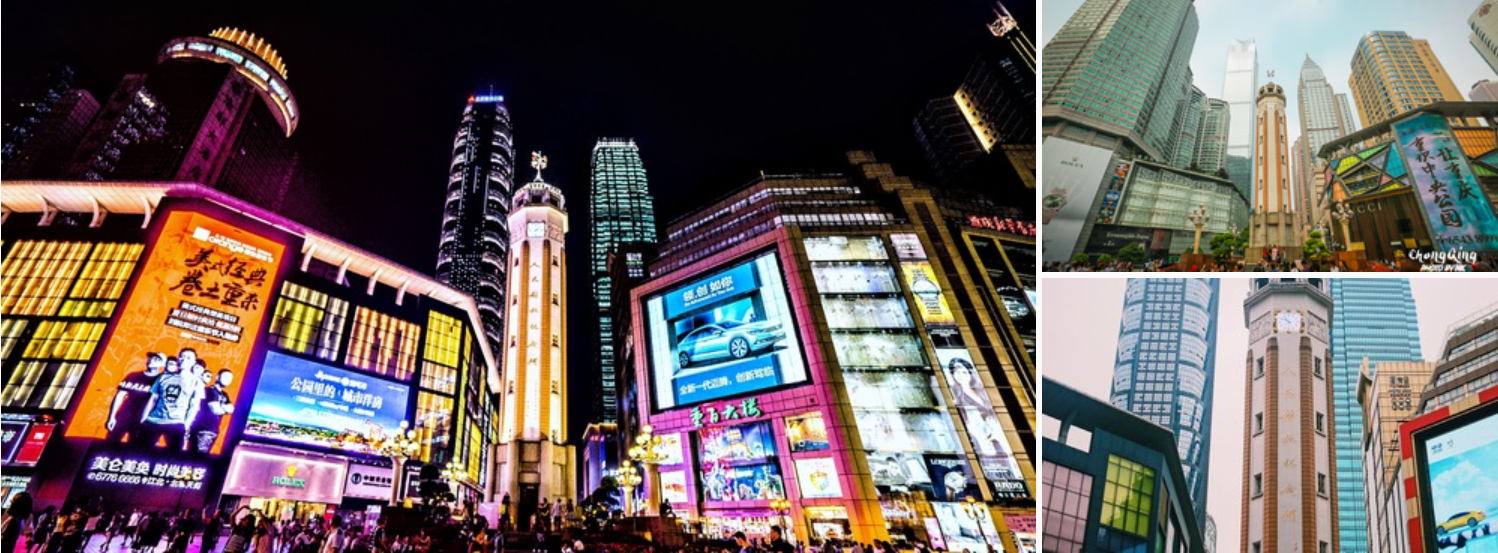 · Bayi Road Food Street here offers almost all Chongqing delicacies. Surrounding shopping destinations include Guotai Plaza, Chongbai Building, Metropolis Oriental Plaza, Xiexin Starlight Plaza, Bayi Plaza, and Chongqing Times Square.